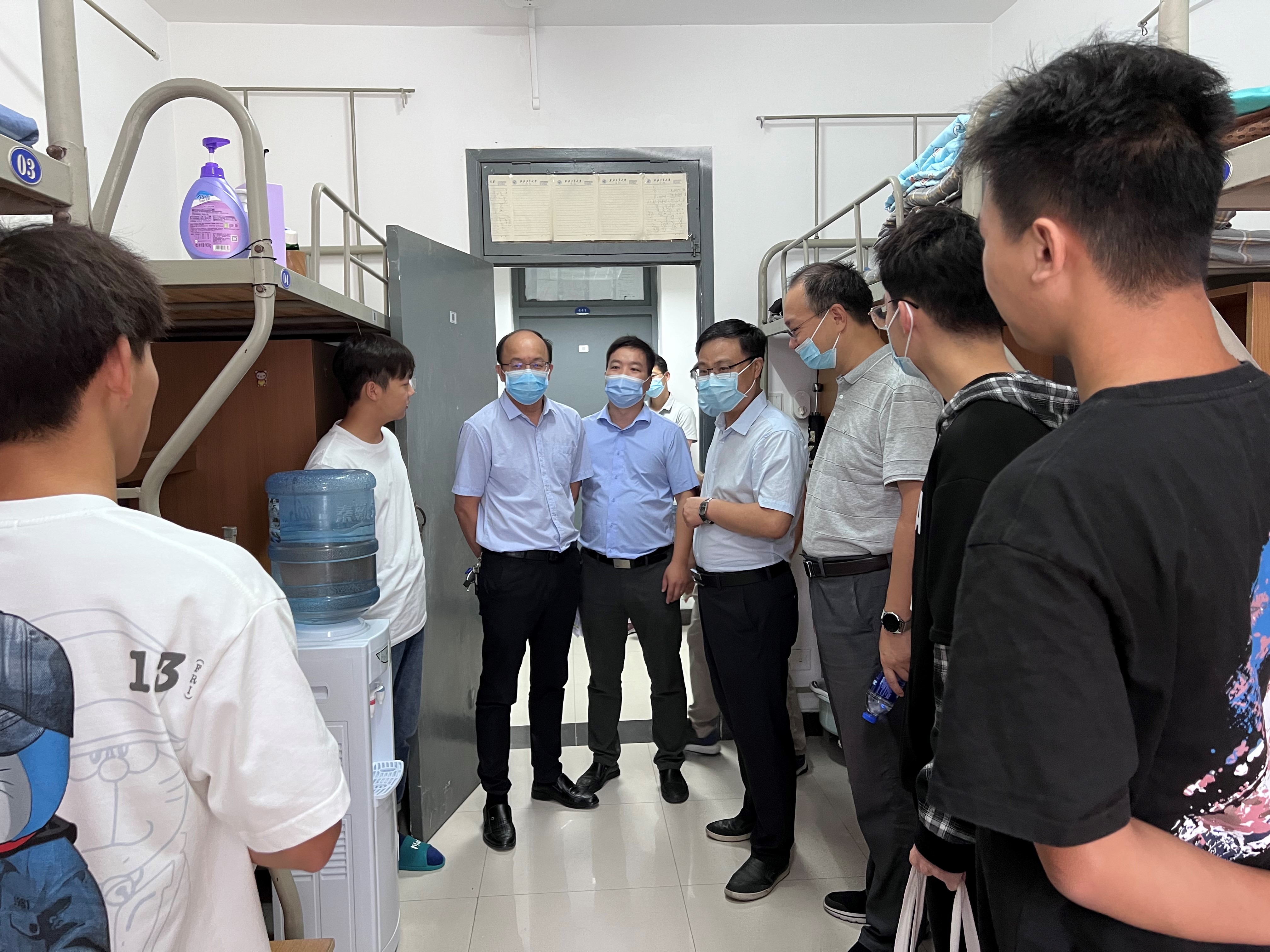 院长张秋禹,党委书记张啸川,党委副书记姚东东,副院长顾军渭、陈凯杰、张宝亮以及2022级新生辅导员和各班班主任一行深入学生宿舍,看望慰问2022级新生,为同学们送上节日的祝福和中秋月饼。