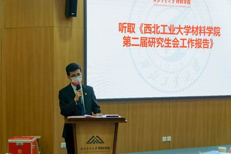 会议听取并审议了第二届研究生会执行主席段梦飞的“立足新起点,抓住新机遇,谋划新发展 奋力续写‘西工大’现象新篇章”工作报告。报告总结了一年来研究生会在深化思想引领、维护同学权益、服务同学成长、推进组织改革等方面做出的突出贡献和成果,并对新一届学生会组织的工作方向做出展望与规划。