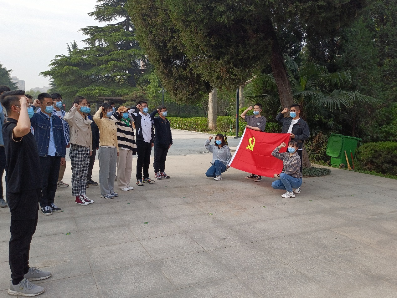 在西安烈士陵园纪念广场前,全体党员默哀致敬,向烈士敬献鲜花,并重温入党誓词。在锻压第二研究生党支部书记何永鹏的带领下,面对党旗,举起右手,握紧拳头,重温入党誓词。一字一句,让每一位党员回忆起入党之初的庄严承诺和奋斗决心;一字一句,提醒每一位党员要牢记党员身份与职责,坚定“不忘初心、牢记使命”的理想信念。