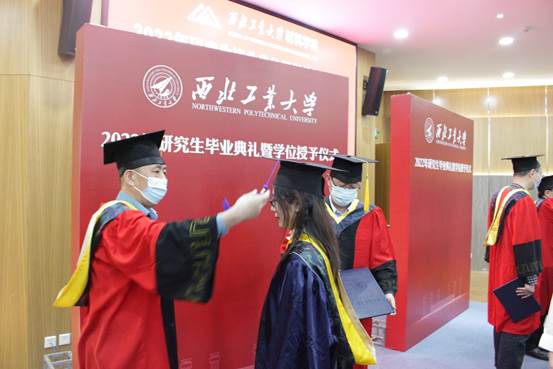 领导及谢科予、张程煜等教师代表分批次为全体毕业生进行拨穗并颁发毕业证书。