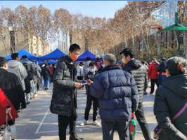从上午11:00至晚上23:00,志愿者们迎着寒风在核酸检测现场,根据分工安排,迅速上岗,为学生与教工提供咨询解答、健康码核查、信息登记、秩序维护、幼老关怀等服务,有序、快速地助力核酸检测工作顺利开展。