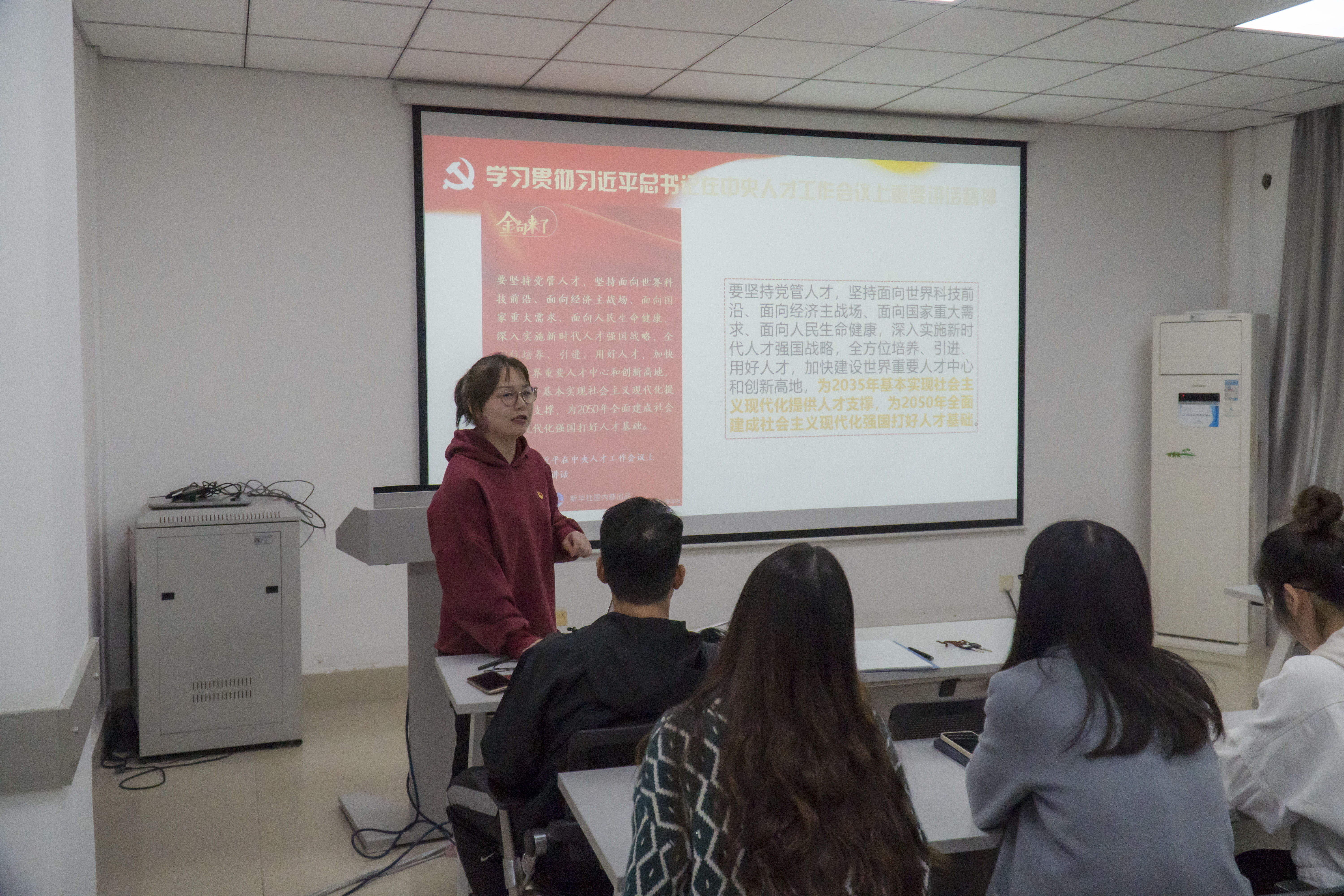 为学习贯彻习近平总书记在纪念辛亥革命110周年大会上的重要讲话和习近平总书记在中央人才工作会议上的重要讲话精神,激励支部成员继承和发扬老一辈科学家胸怀祖国、服务人民的优秀品质,引导支部成员勇担时代责任和历史使命。10月25日晚19:30,金属材料第一、第二研究生党支部在公字楼328联合开展党员大会暨主题党日活动。会议由金属材料第一研究生党支部书记邓妮主持。