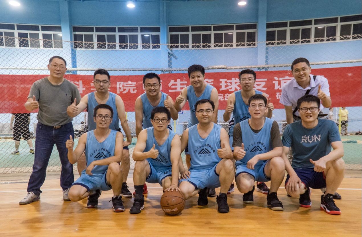随着一声哨响,比赛开始。教职工代表队与研究生代表队你来我往,十分激烈,整个比赛打得是热火朝天。比赛第一节,教职工代表队开场打出一波小高潮,比分迅速上双。赛程过半,研究生代表队渐渐控制住场上局面,追平并实现反超比分。比赛第四节,张勇老师作为教职工代表队的教练,对场上局势进行了准确分析,合理布置战术,场上老师球员坚决执行战术,直至第四节末,教职工代表队与研究生代表队打平,双方约定对比赛加时。