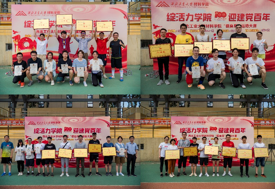 党委副书记罗皎、副院长王洪强、部门工会主席杨舜、团委书记李治军、组织员廖莎莎等分别为健身月活动中羽毛球赛、拔河比赛和百人百米接力赛获奖个人和单位颁奖。至此,本届健身月系列活动圆满成功,顺利结束。