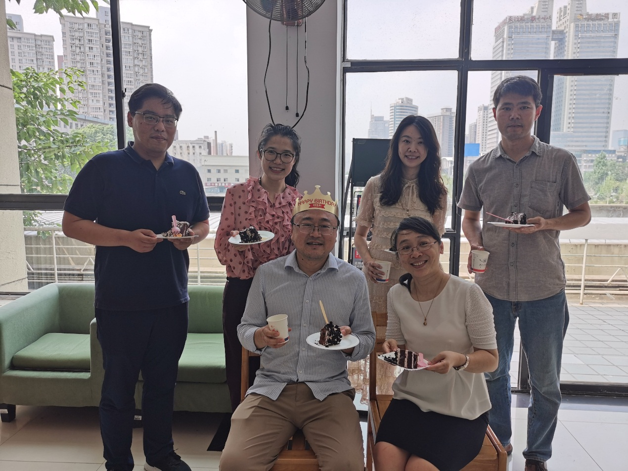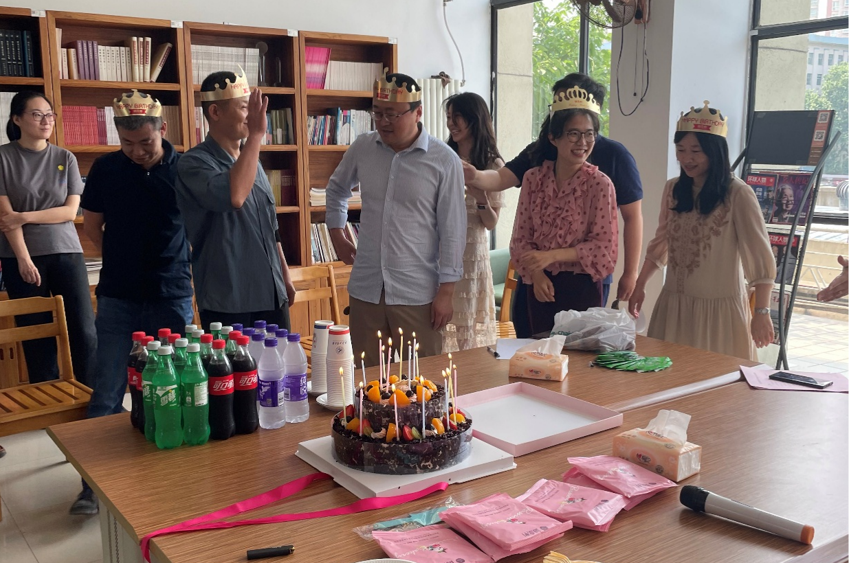 这个大集体更加温暖,欢迎大家多提意见建议,一起把这项工作做得更好。在柔和温馨的音乐中,大家一起吹灭蜡烛,在轻松快乐的氛围中分享美味蛋糕和祝福,分享工作生活点滴,分享各自快乐人生。