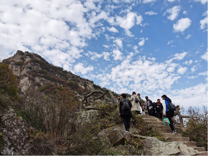 全体教职工乘坐校车按时抵达了翠华山。深秋清晨的翠华山,山间薄雾缥缈、溪流潺潺,红叶漫山,郁郁葱葱,继而红日云间隐隐现现,山风阵阵,激起飞鸟凌空,雾散山清,美不胜收。