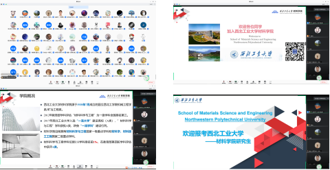还安排了各系组织的师生见面会。学生们根据报考的专业方向进入各系腾讯会议分会场,材料学系主任高峰教授、材料成形及控制系主任罗皎教授、复合材料系主任张程煜教授、材料前沿交叉中心主任谢科予教授分别组织了师生见面座谈会,为学生介绍了本学科的整体情况,李贺军院士、成来飞教授、李铁虎教授、李京龙教授、傅莉教授、苏海军教授、刘永胜教授、梅辉教授等参加了座谈会。学生通过自由提问,加深了对研究方向的了解。