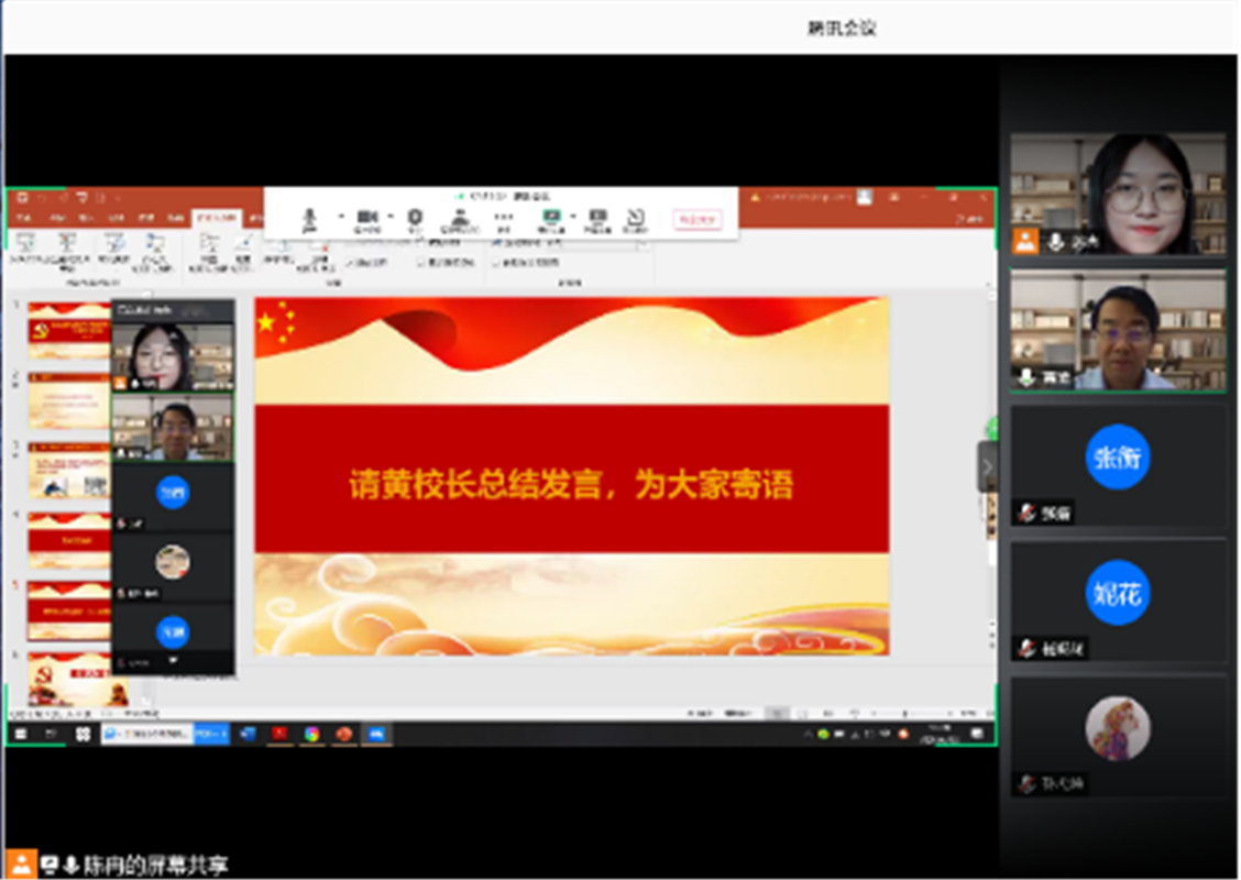 “双一流”建设的关键时刻,作为国防院校的优秀学子,同学们要始终践行至诚报国使命,发扬不怕苦不怕累的精神,为实现“两个一百年”奋斗目标和中华民族伟大复兴的中国梦贡献自己的一份力量。三是希望同学们立足科技前沿,不断求索真理,勇攀科学技术高峰。要始终牢记习近平总书记的殷殷嘱托,服务于国家进步和民族发展,努力解决各领域的“卡脖子”问题,各位同学一定要扎实学习好专业知识,直面困难、潜心科研,以青春报国、以科技强国。最后,黄维常务副校长表达了疫情结束后与同学们相约校园,在线下进一步开展交流的期待以及对大家美好的祝福。