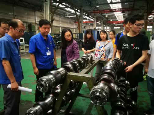 锻压第二师生融合党支部(精确塑性成形课题组)詹梅教授、博士生与硕士生党员、入党积极分子和共青团员等28名同志深入中国兵器工业集团陕西北方动力公司锻压车间、铸造车间、曲轴车间、泵滤车间、箱体车间、凸轮轴车间、总装配车间等主要生产现场,看到了坦克各类关键零部件制造和装配工艺全过程以及各类大型数控机加设备,参观全程大家还和现场技术人员进行了深入细致地交流。参观过程中,大家无不感受到了中国兵器工业集团陕西北方动力公司员工们“撸起袖子加油干”饱满的工作热情,他们多年来扎根西部,为我国的国防事业奉献青春,艰苦奋斗。最后,大家还进行了合影留念。