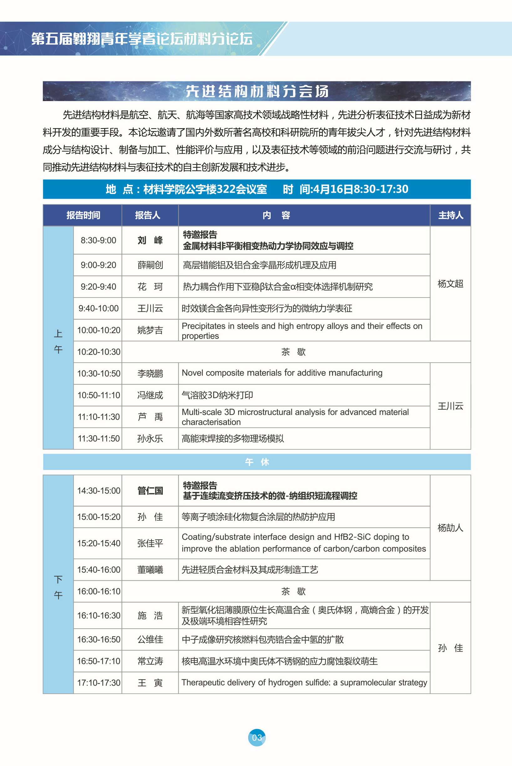 第五届翱翔青年学者论坛材料分论坛即将开幕