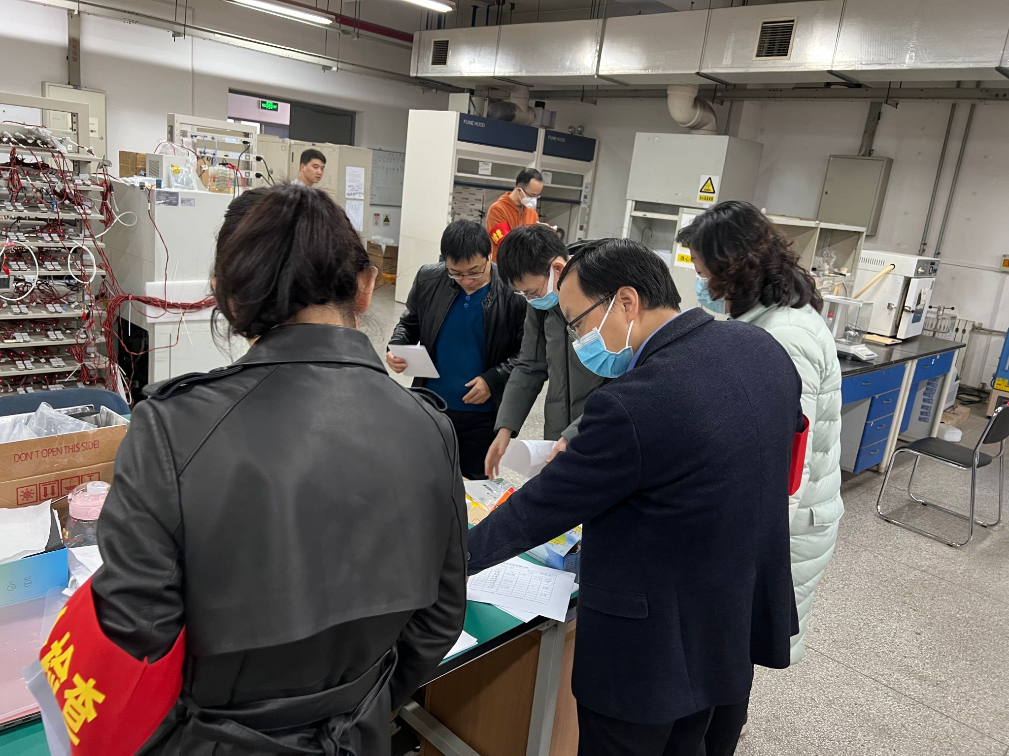 科研办制定了安全教育培训、消防设施维护、原有化学品库存盘点、药品试剂标签规范、管制类化学品存放、化学品存储与出入库、气瓶使用和危废管理等八个方面共三十二条安全标准。检查组成员根据制定的安全标准一一对标对表检查,重点对实验室危化品管理、易燃易爆气体检测、气瓶使用、消防、电路、危废处置等进行了全面细致的检查,对发现的问题与实验室安全负责人进行了及时沟通交流,提出了具体整改建议,并下发整改通知书,要求限时完成整改。