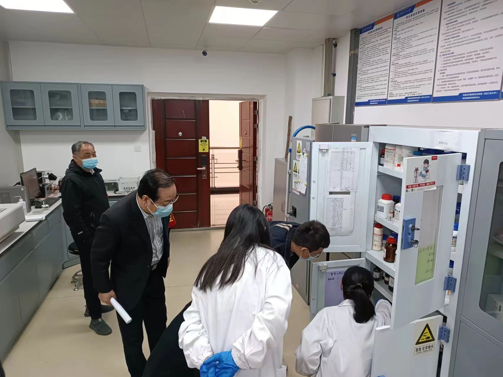 在检查过程中,检查组特别强调各实验室负责人要切实落实实验室安全管理责任制和安全意识,务必将责任落实到人;实验室负责人和导师要常抓不懈,持续加强学生的安全教育和培训,提高全员安全防范意识和能力;不断完善和优化实验室安全操作规程,并严格执行和监督;加强安全自查力度,及时发现隐患并予以治理;不断改善实验室安全设施,重点区域配置监控、应急处理装备,加强实验室安全防范技能,提升监督和管理的现代化水平,坚决筑牢实验室安全基石,以实际行动为党的二十大献礼。