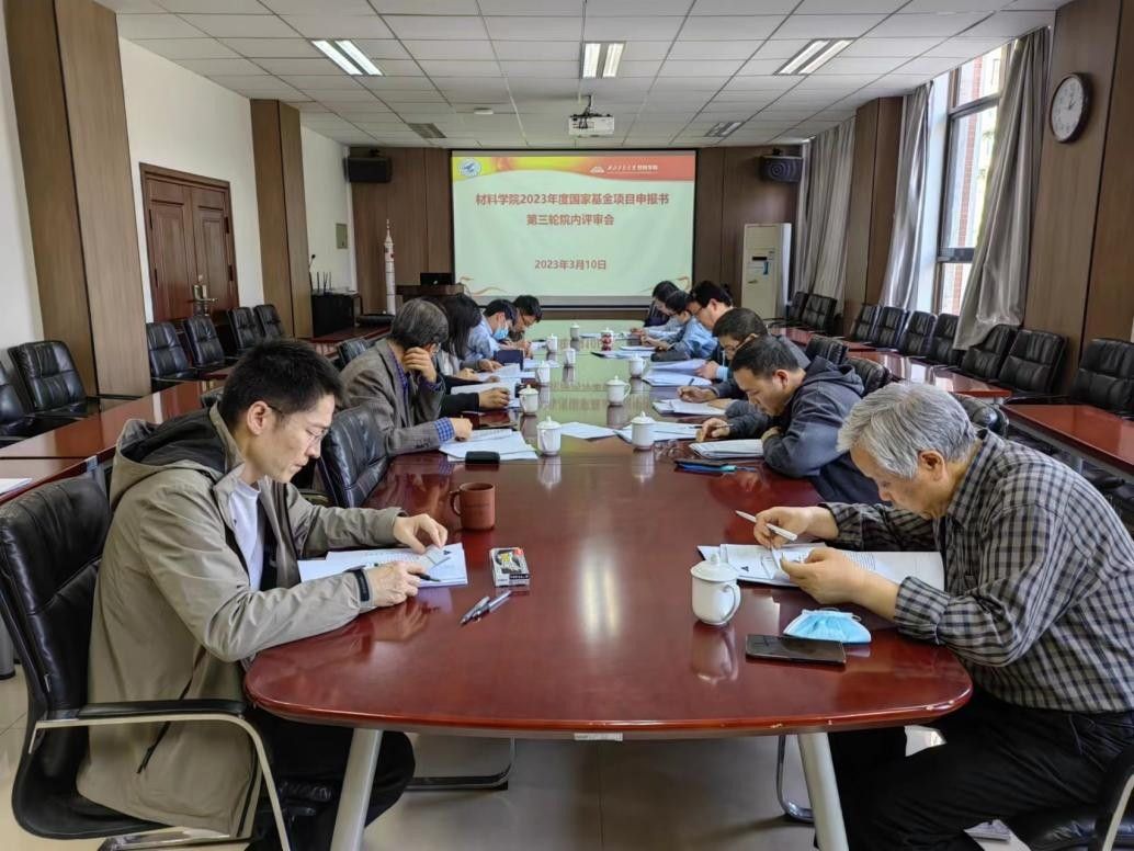 在公字楼322会议室组织开展了2023年度国家自然科学基金项目第三次集中评审,特邀张军、李铁虎等13位教授作为评审专家,对此次提交的60余份基金进行集中评审辅导,会议由科研副院长苏海军主持。