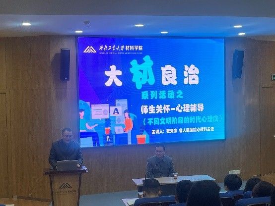 学生进行心理义诊。同时邀请到省人民医院心理科主任张天布带来《不同文明阶段的时代心理病》主题讲座。本次活动旨在帮助学生了解心理疾病,正确认识自我,保持积极健康的心理状态,乐观面对生活与学习中的问题。