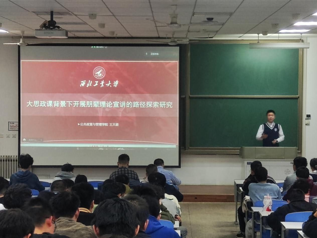 王天毅同学作了“大思政课背景下开展朋辈理论宣讲的路径探索研究”的报告,通过详实的案例分析,让同学们了解了高校宣讲团的职责、特点、作用和意义。