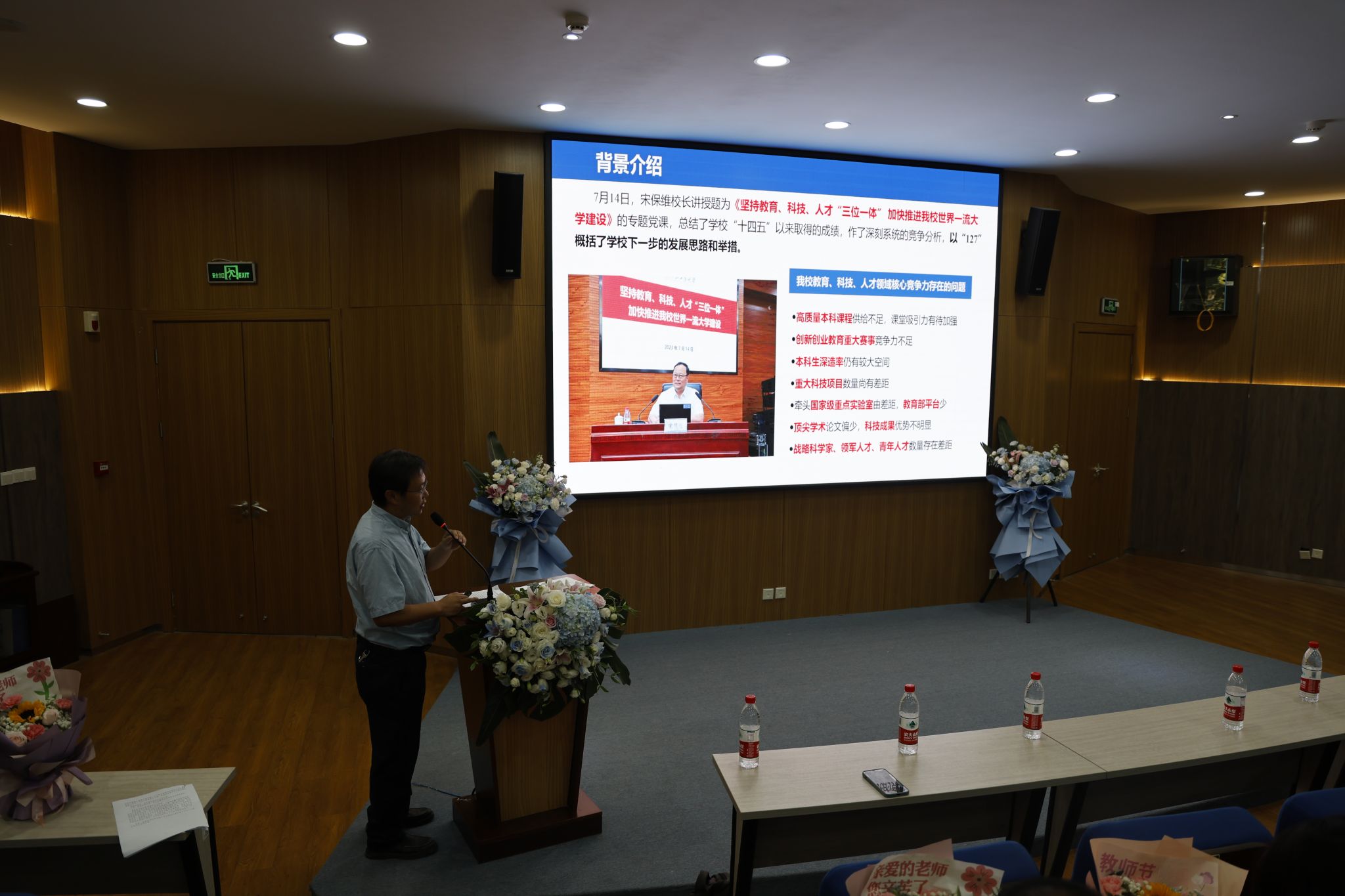 李恒传达了李言荣书记和宋保维校长专题党课及2023年暑期工作研讨会暨新学期干部大会精神,重点解读了李言荣书记提出的“127”发展任务目标和宋保维校长提出的“127”发展总体思路与具体落实举措,传达了JavBus