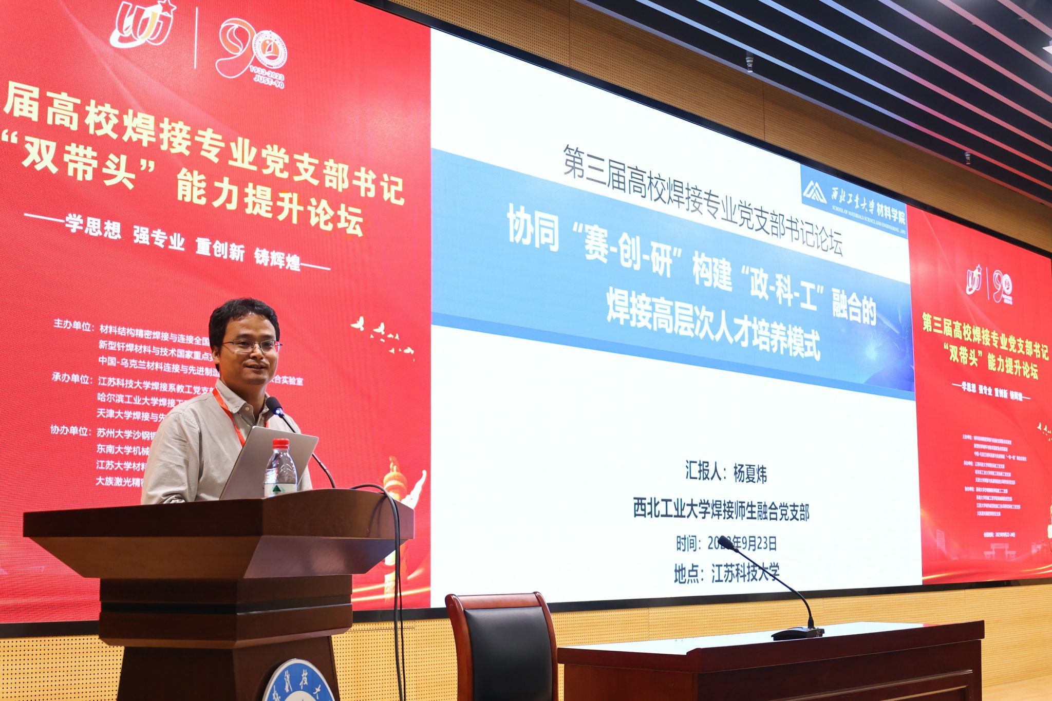 焊接师生融合党支部书记杨夏炜担任本届论坛联合主席,支部博士后苏宇参加了本届论坛。杨夏炜以《协同“赛-创-研”,构建“政-科-工”融合的焊接高层次人才培养模式》为题,代表支部做了大会报告,针对焊接科研育人创新平台的建设和发展,进行了详细介绍,打造高水平的育人创新平台,夯实学生的科技创新能力,旨在为深化焊接专业教育教学改革、助推具有理论知识丰富、实践能力强、创新意识和创新精神的人才培养模式的构建,提高学生的综合能力。同时,经论坛组委会讨论决定由JavBus