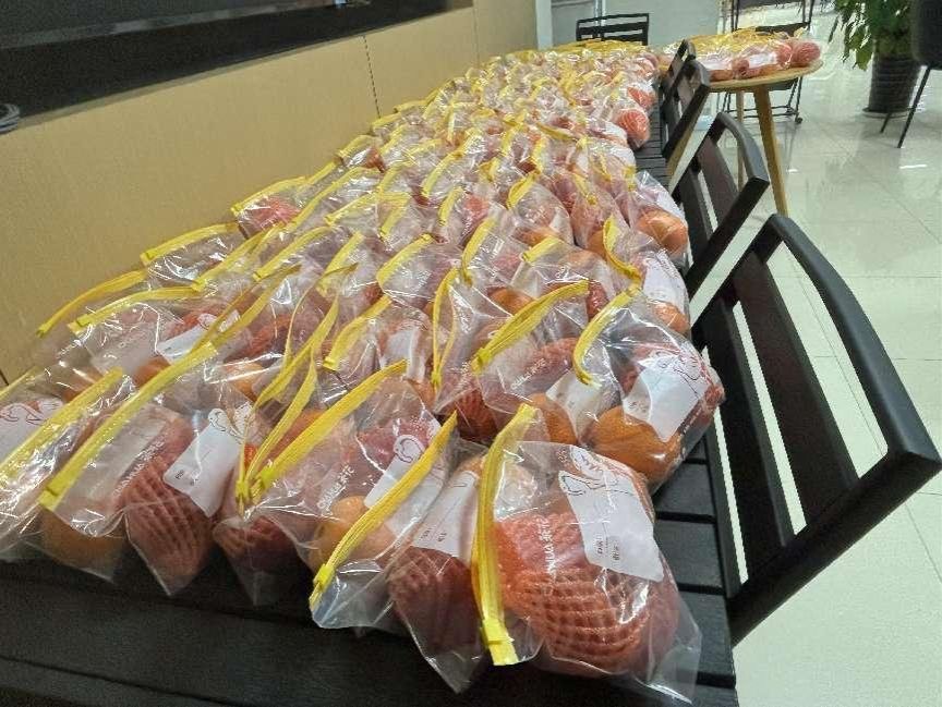 为考研学子准备“加油包”,内含寓意一战“橙”硕的橙子和“苹”稳上岸的苹果。橙子鲜艳的色彩和清甜的味道承载着前行的勇气和信心;苹果的坚实和稳重代表着学子们在备战考研中的稳定和持久努力。希望考研学子们怀着必胜的信念,“苹”稳上岸、一战“橙”硕。