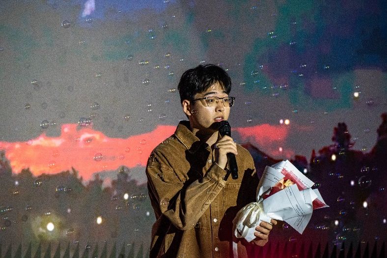 深情演绎的歌曲《蝴蝶》在灯光氛围的烘托中流露出动人的旋律,祝愿每位同学都能遇见属于自己的蝴蝶。
