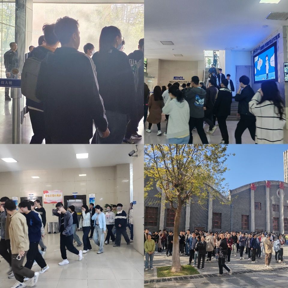 此次活动由消防知识讲解、消防逃生预警演练、消防器材实操三部分组成。演练现场,胡涛首先向师生详细介绍了火灾的危害、火灾的预防知识、火灾发生后的应急措施以及逃生技巧。随后,演练进入实践环节。一阵急促而嘹亮的警报声和飘起的烟雾拉开了本次消防演练的帷幕。警报声响起,师生们迅速按照指定的疏散、逃生路线有序撤离,集合至安全区域,整个演练过程紧凑有序,历时5分钟,做出了快速、安全、有序。最后,在材料科技大楼门外的空地上,胡涛现场讲解了灭火器使用要点及注意事项,亲自演示了灭火器的正确使用方法,并指导师生进行实际操作,师生们纷纷积极参与,熟练掌握了灭火技巧。