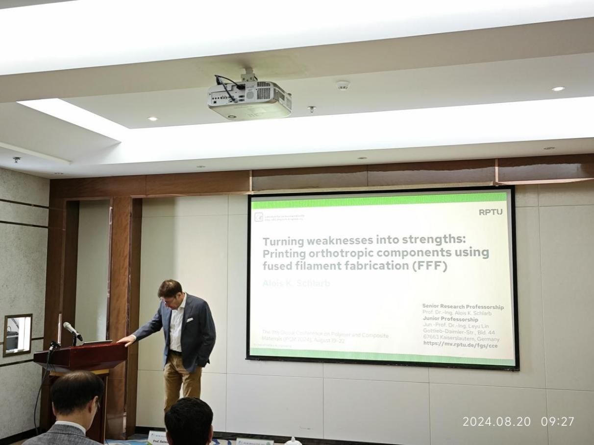 Alois K. Schlarb教授介绍了热塑性材料制造的机遇和挑战,特别是纤维增强复合材料,使用熔融长丝制造。其目的是在纤维方向上充分利用纤维增强热塑性塑料的材料性能,但不能以牺牲横向强度为代价,可通过工艺控制来克服。这使得方向相关(正交异性)性能可以在组件中进行具体调整,从而实现材料和节能使用模拟自然的材料。