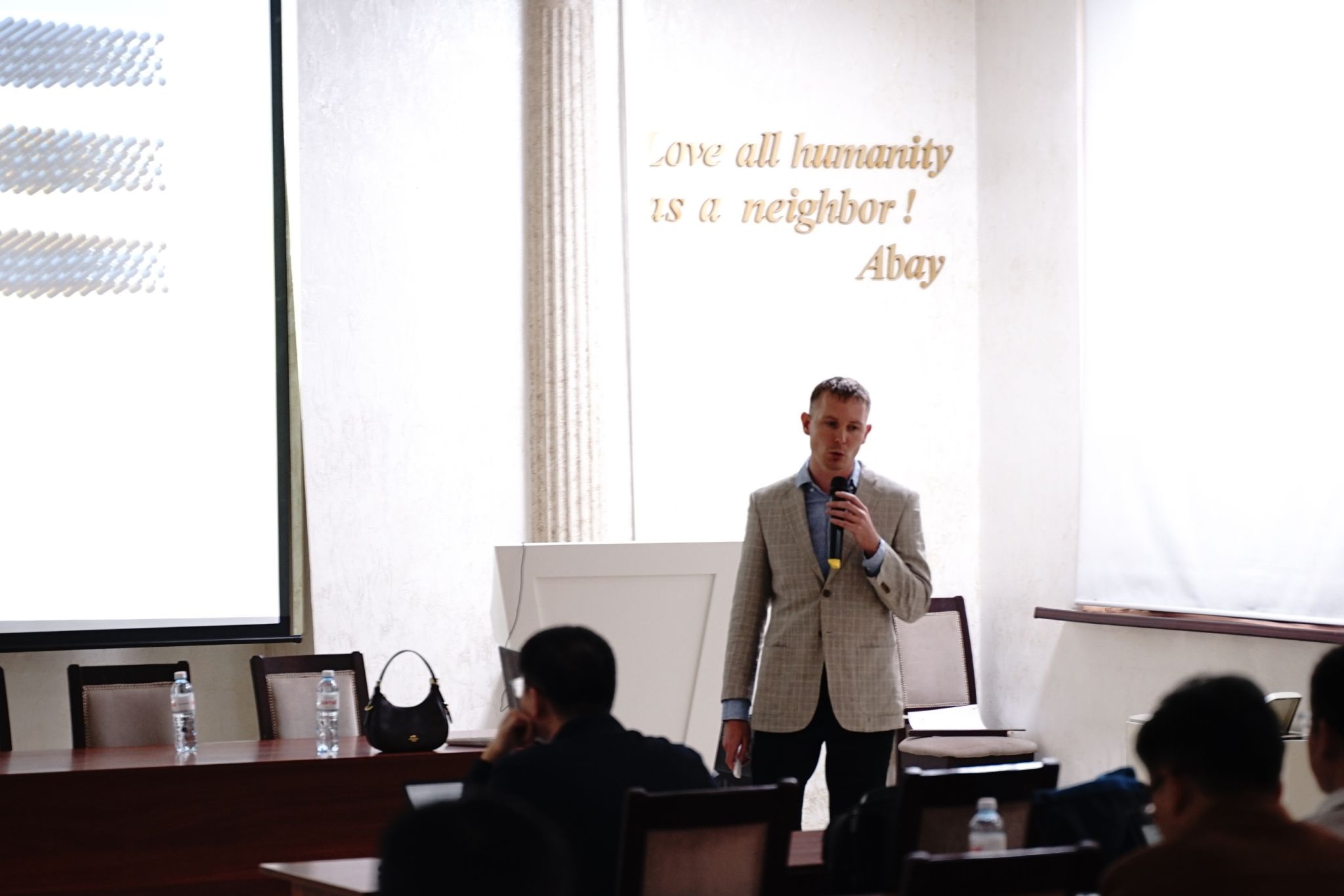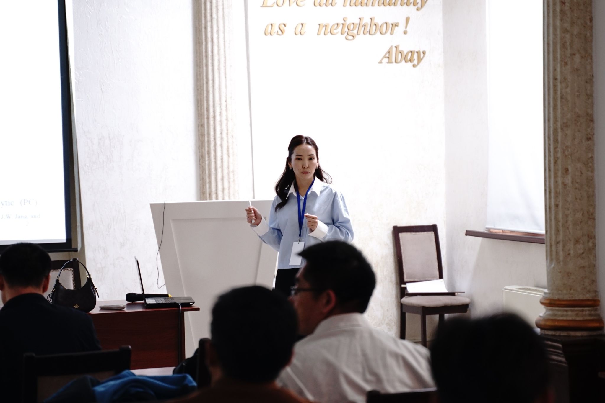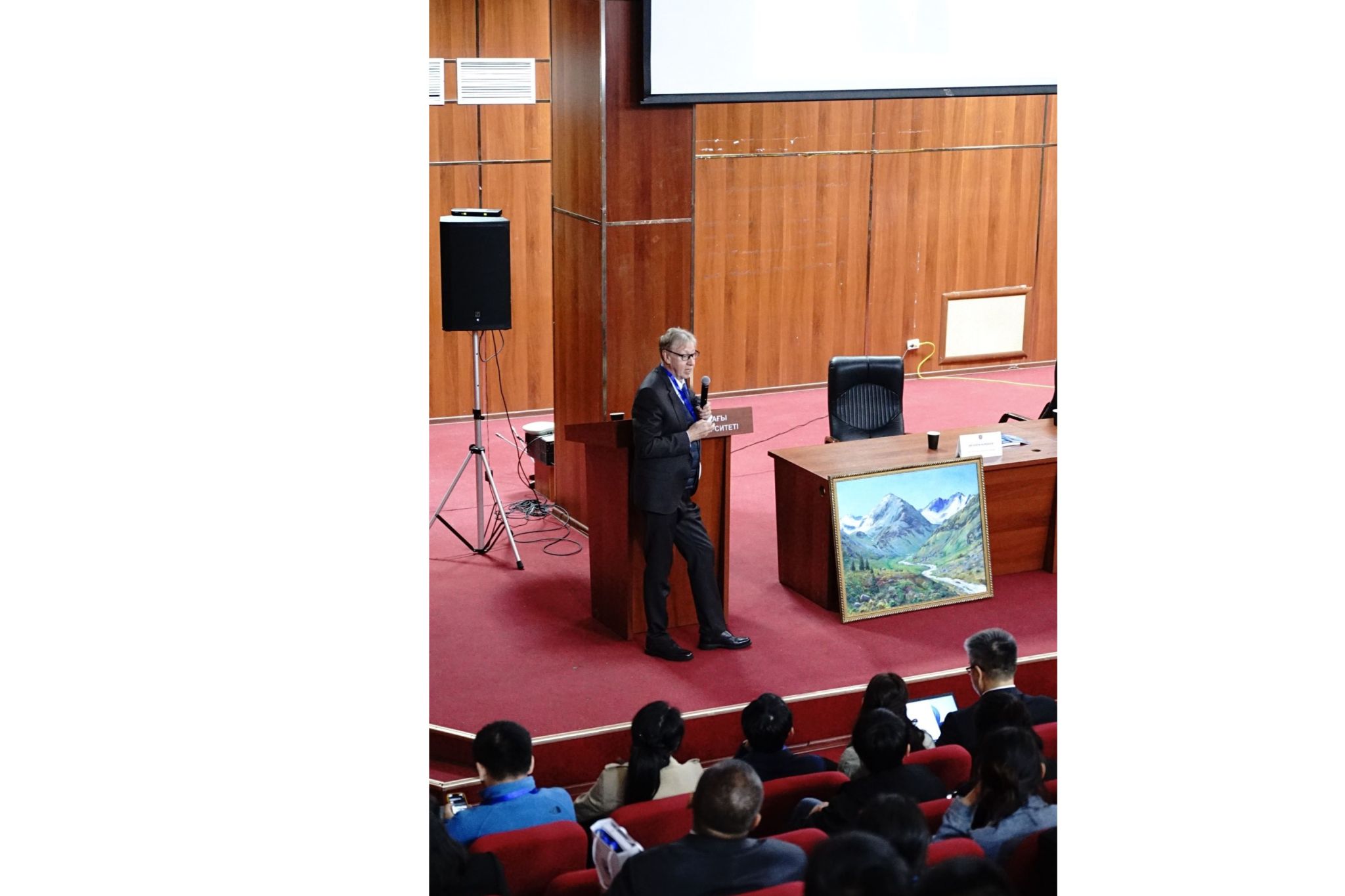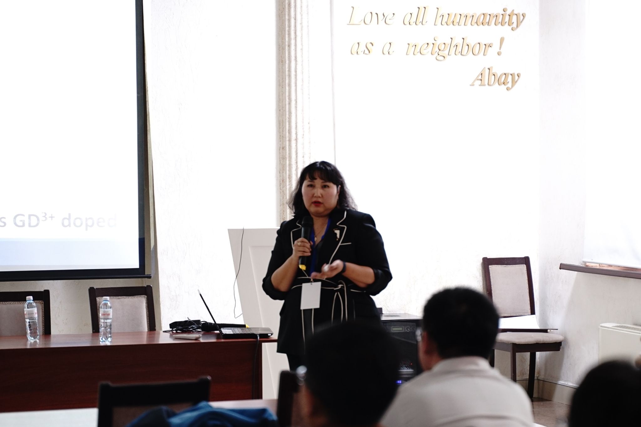Nurzada Beissen教授主持全体会议。与会者聆听了来自俄罗斯赫尔岑国立师范大学的Kolobov A.V.教授关于“硫属元素:电子材料的下一代”的报告。
