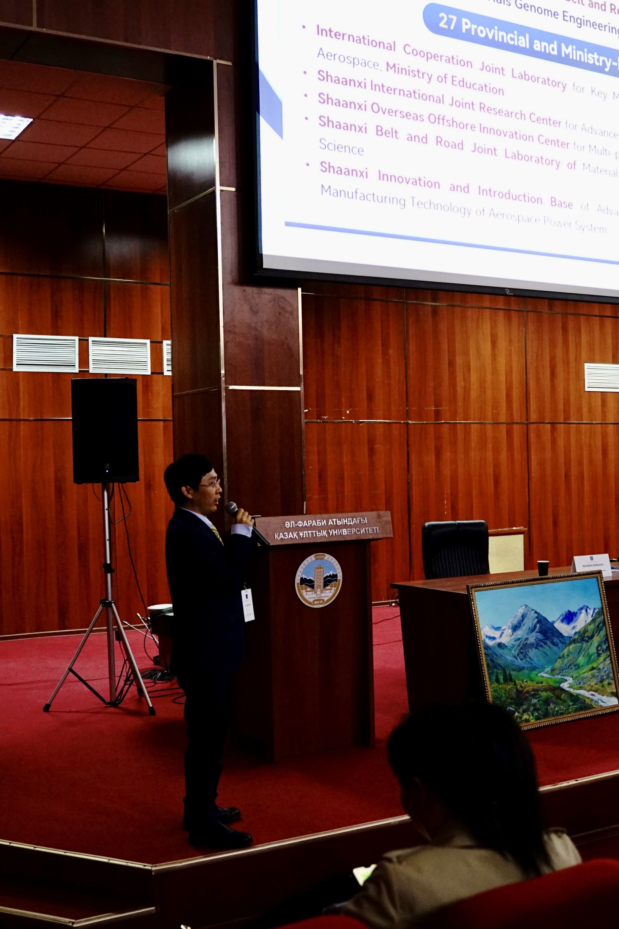 院长付前刚教授和哈萨克国立大学Anatoly Kupchishin教授致欢迎辞。付前刚教授在致辞中表示,此次研讨会是两校合作的重要里程碑,将为双方在材料科学领域的研究带来新的机遇。