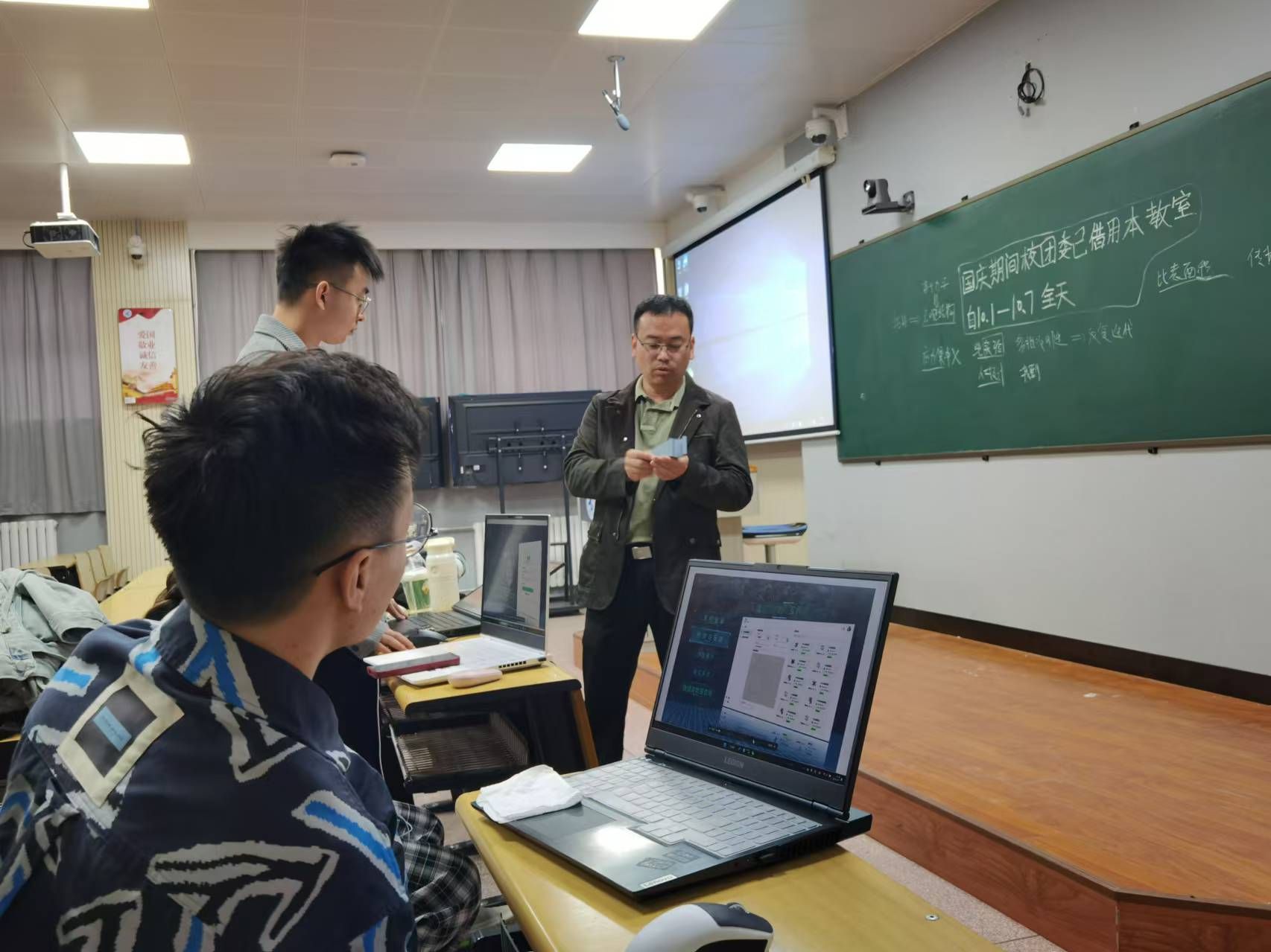 通过国赛网评后,团队成员热情高涨。国庆期间进入冲刺阶段,快节奏的打磨与修改,极大地考验并培养了个人能力与合作精神。团队成员对项目了熟于心,从各个方向优化项目,他们调侃道“少了哪一位成员都不行。”