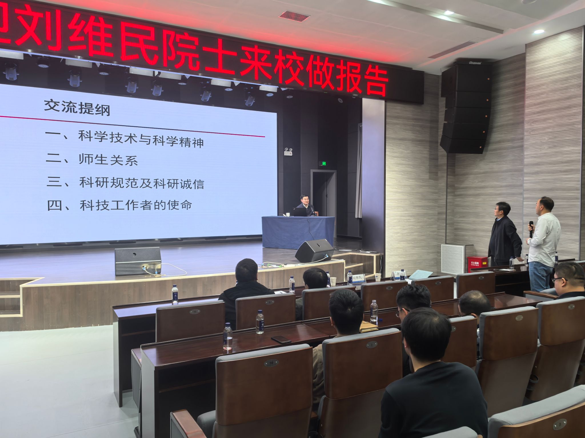 师生作报告表示感谢,要求全体师生认真学习刘维民院士报告内容,弘扬科学家精神,恪守科研诚信,永攀科技高峰,矢志求实创新,在今后的学习和工作中锚定“天下工大、世界三航”远景目标,实现“为党育英才、为国铸重剑”的职责使命。