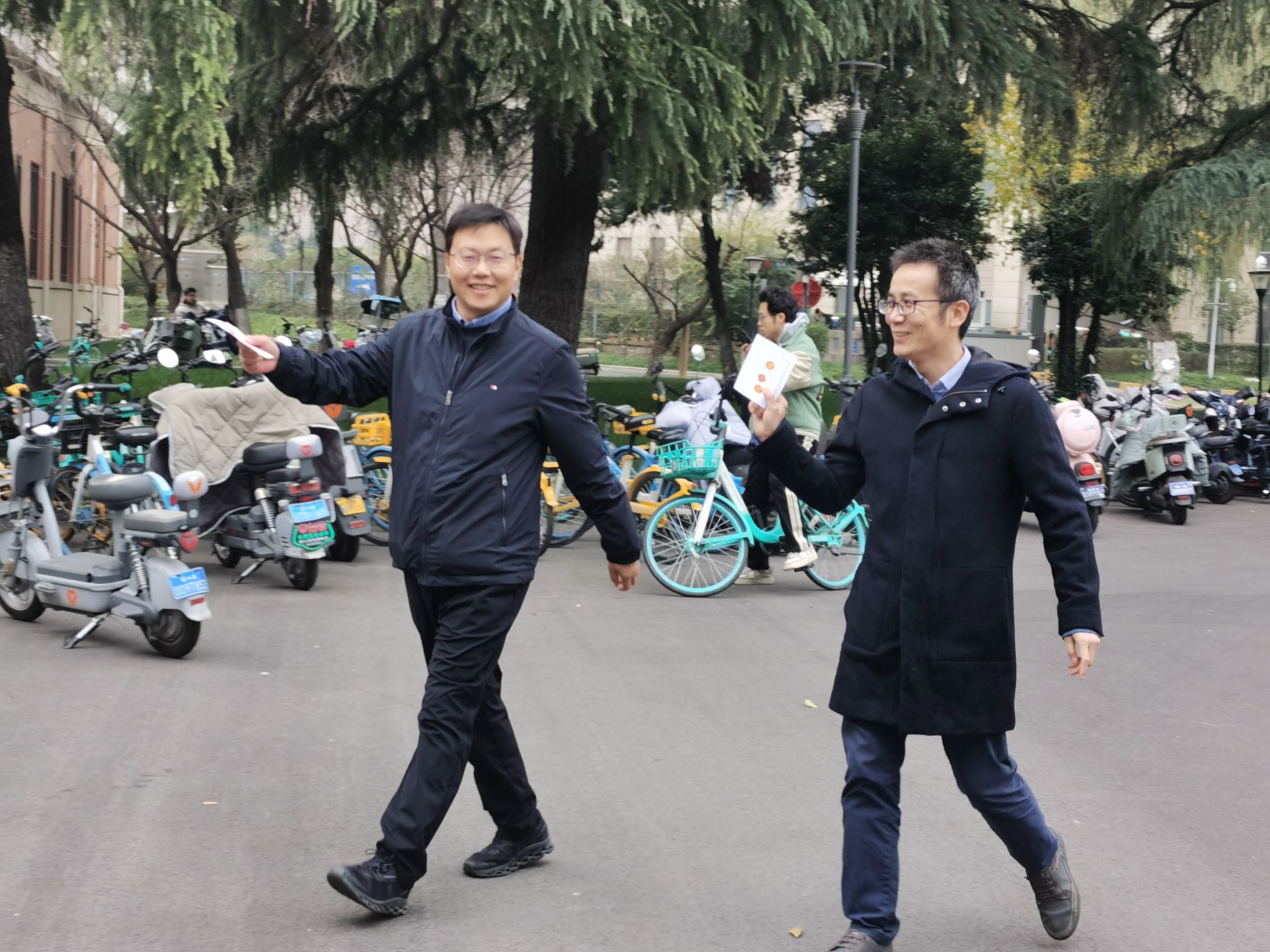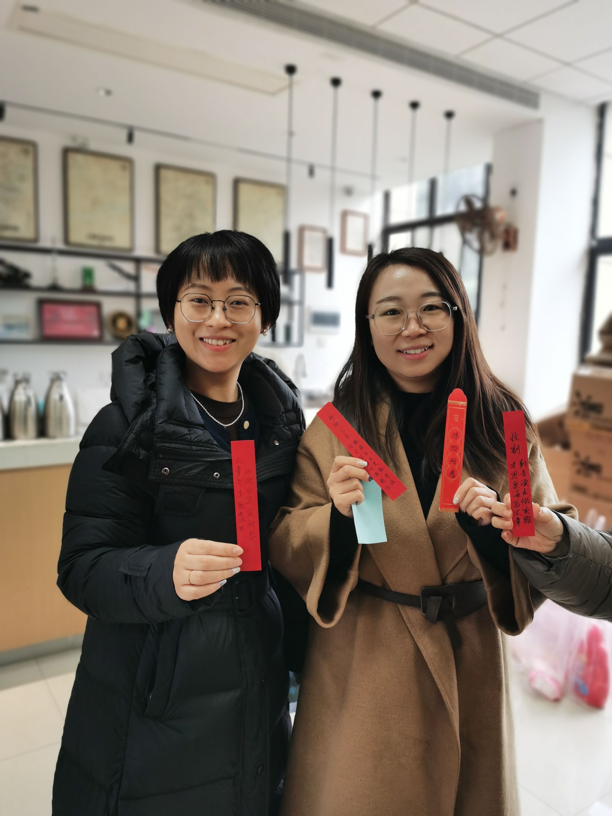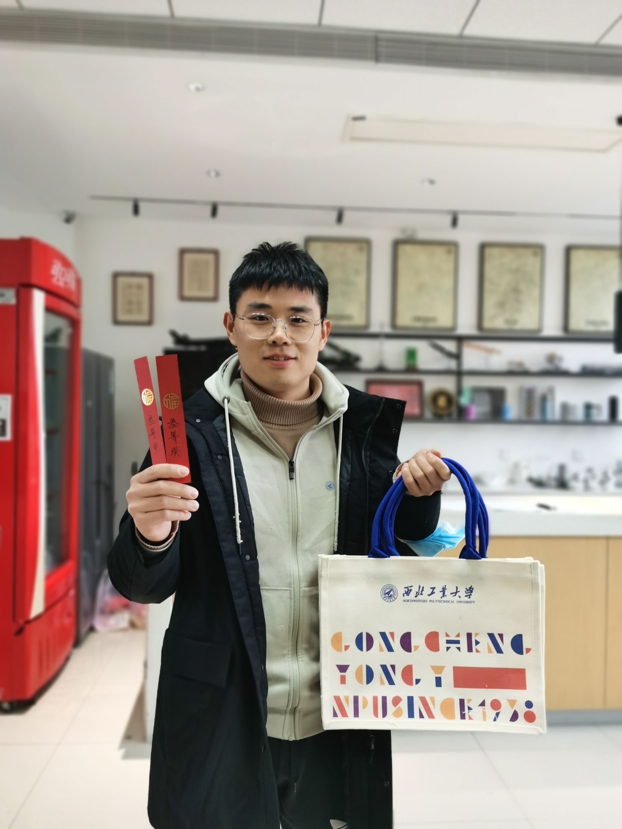 活动抽奖环节于12月12日下午在公字楼三楼中厅举行,凭步行卡参与抽奖。抽签语充满了吉祥祝福和美好愿景,“自然基金全当寒假作业,重点研发充实春节生活,每投必中”“单晶多晶非晶兢兢业业,卓青优青杰青轻轻松松,诸事顺利”,每条签语都结合老师们的教学和科研工作设计,既有高尚的文化创意,又有接地气的风趣意味,使抽奖环节充满欢声笑语。