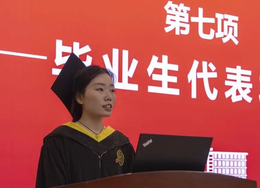 柳雨萌代表本科毕业生发言,她感恩母校提供的学习平台与实践机会,感谢老师们的悉心教导和同学们的温暖关怀。祝愿JavBus