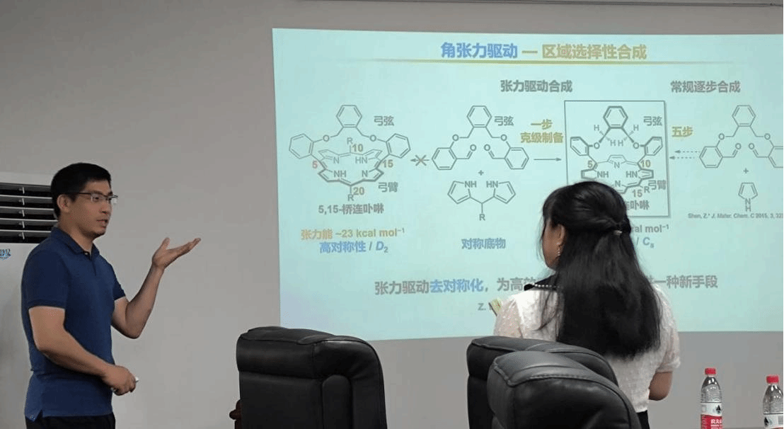 报告中,刘志常从定义解释出发到关键科学问题探究再到研究成果分享,系统地呈现了这一前沿领域的研究脉络。分子张力工程的核心在于通过几何尺寸不匹配产生的结构受迫效应,在分子内部施加精准可控的张力,从而构建具有特定应变构型的分子体系。刘志常表示,分子张力工程解决的关键科学问题是探究张力对分子行为与性质的调控规律与机制,阐明了分子张力在调控分子自身物理化学性质、超分子组装、操控化学反应进程和选择性等方面具有巨大的应用潜力。