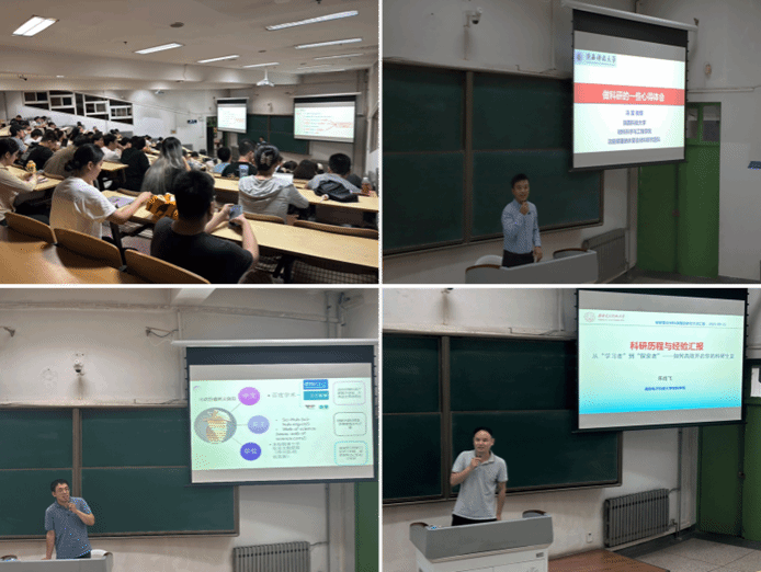 9月11日,支部邀请陕西科技大学冯雷教授、西安航天复合材料研究所田新发工程师、西安电子科技大学朱肖飞副教授等三位优秀毕业生回组交流。三位校友深耕不同领域、各有建树,他们结合自身科研历程,分享了在学术探索中遇到的挑战与突破、积累的经验与感悟,将宝贵的科研心得倾囊相授,为初入科研领域的新生们提供了重要指导,也让大家从榜样身上汲取了奋进的力量。
