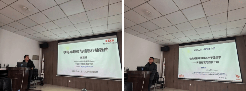 领军讲堂第 50 期,报告会由杨芳研究员主持。胡卫进研究员以《铁电半导体与信息存储器件》为题,阐述了铁电材料在多领域的应用及团队在铁电隧道结、二维铁电材料等方面的重要成果;唐云龙研究员聚焦《铁性薄膜材料及其电子显微学》,介绍了应变工程调控铁电极化拓扑结构的系列突破性进展,为新型器件研发提供新思路。