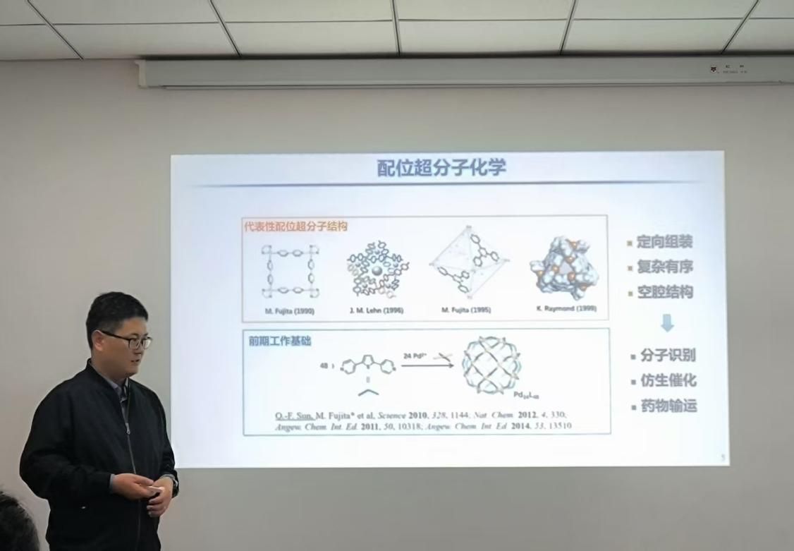孙庆福研究员的报告题为《稀土超分子化学》。报告聚焦于超分子纳米容器的定向构筑与功能调控,从稀土元素能级结构出发,回顾了稀土配位超分子笼的发展历程与设计策略,重点介绍如何通过多齿配体设计、多功能协同等方法,应对稀土超分子体系在定向组装方法匮乏、功能开发不足等挑战。