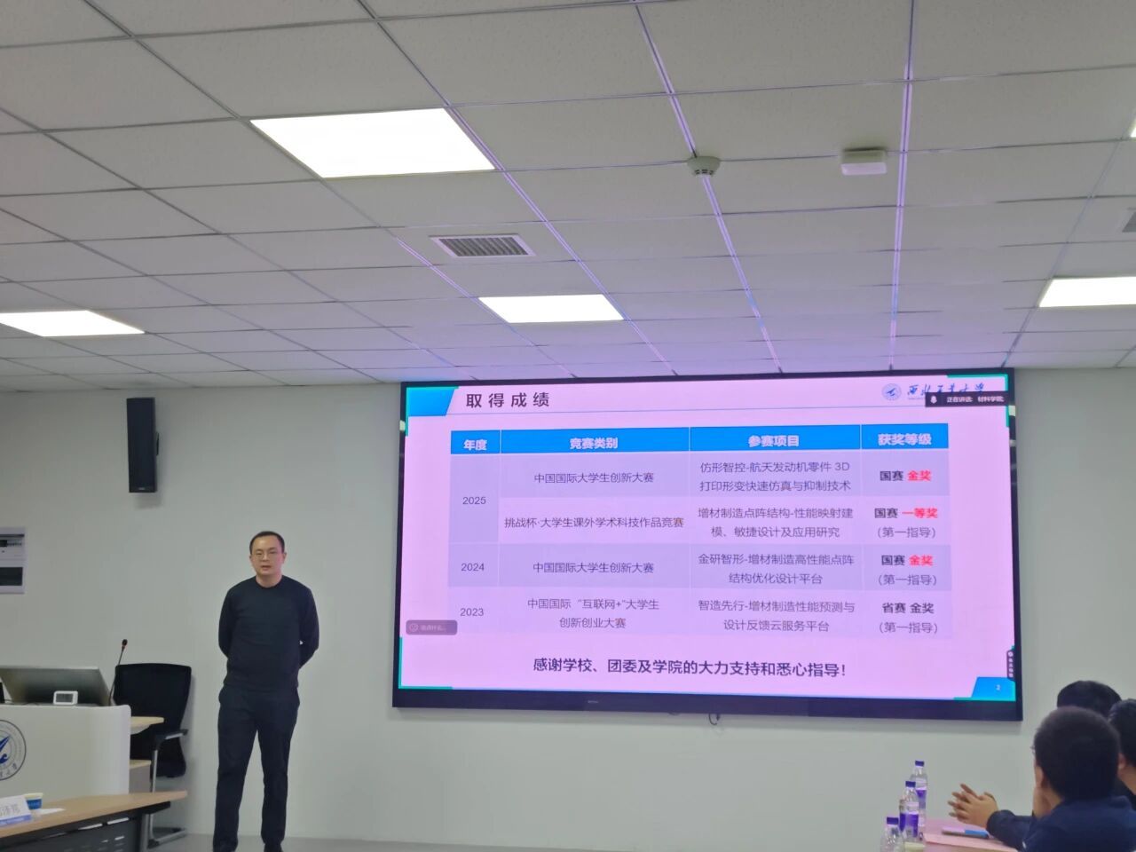 副院长苏海军,党委副书记禹亮,院长助理、团委书记孙磊、院长助理刘哲、郑泽邦及获奖项目指导教师、参赛学生代表等参会。会议由禹亮主持。