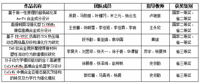 材料科学与工程仿真创新方向共收到作品49项,创历年新高,包括来自北京、山东、河北、河南、湖南、山西、陕西、新疆、江西、贵州等10个省市的多所知名高校。经过前期的省赛分组评审,共评选出16支队伍进入总决赛。总决赛包括作品评审和线上答辩两个环节,经过专家评审答辩、全国组委会复核,共评出一等奖3项,二等奖5项,三等奖8项。