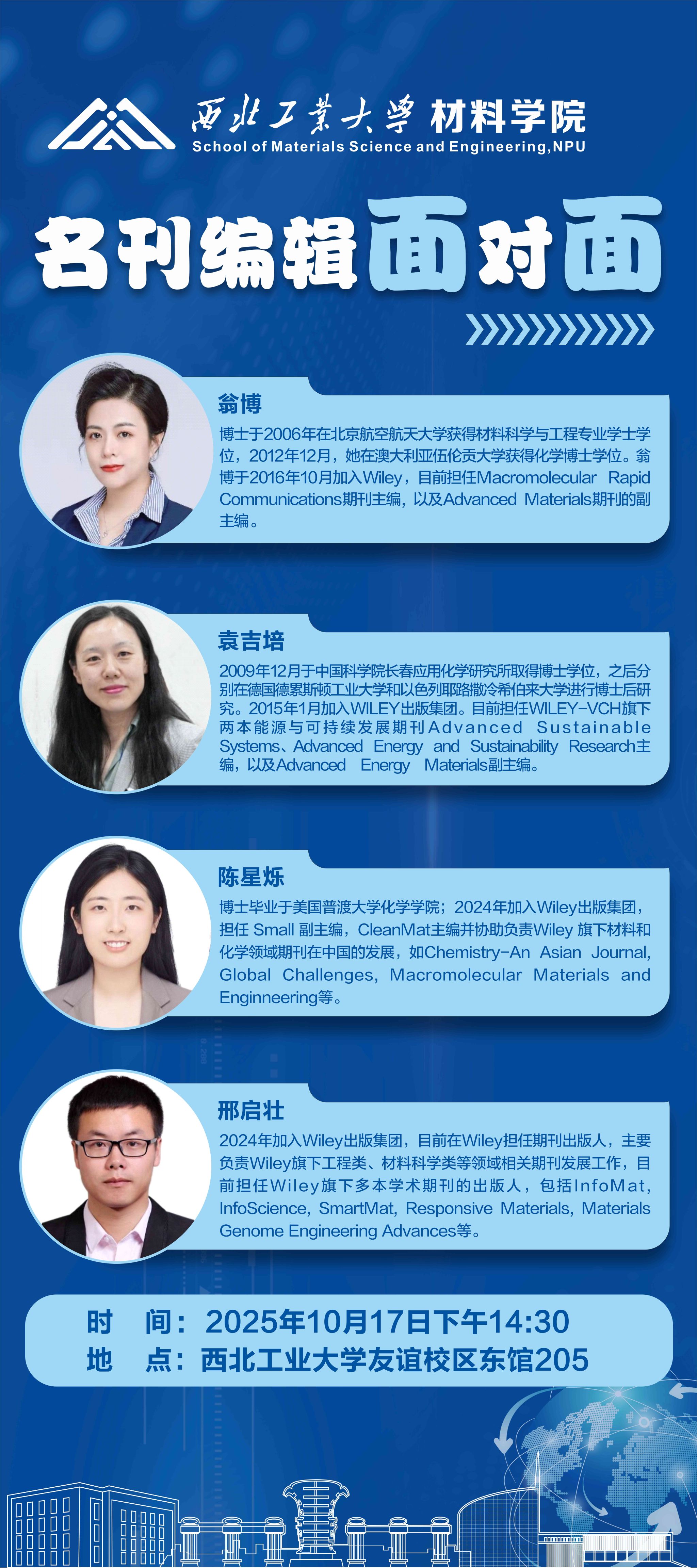 主题:名刊编辑面对面(先进材料(AM)、先进能源材料(AEM)、Small等期刊副主编领衔)