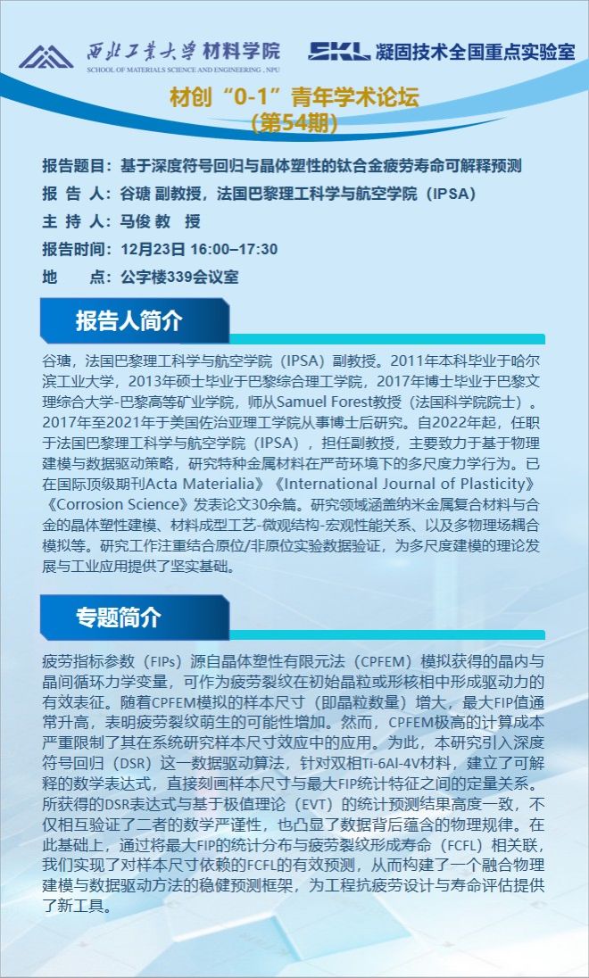 报告题目:基于深度符号回归与晶体塑性的钛合金疲劳寿命可解释预测