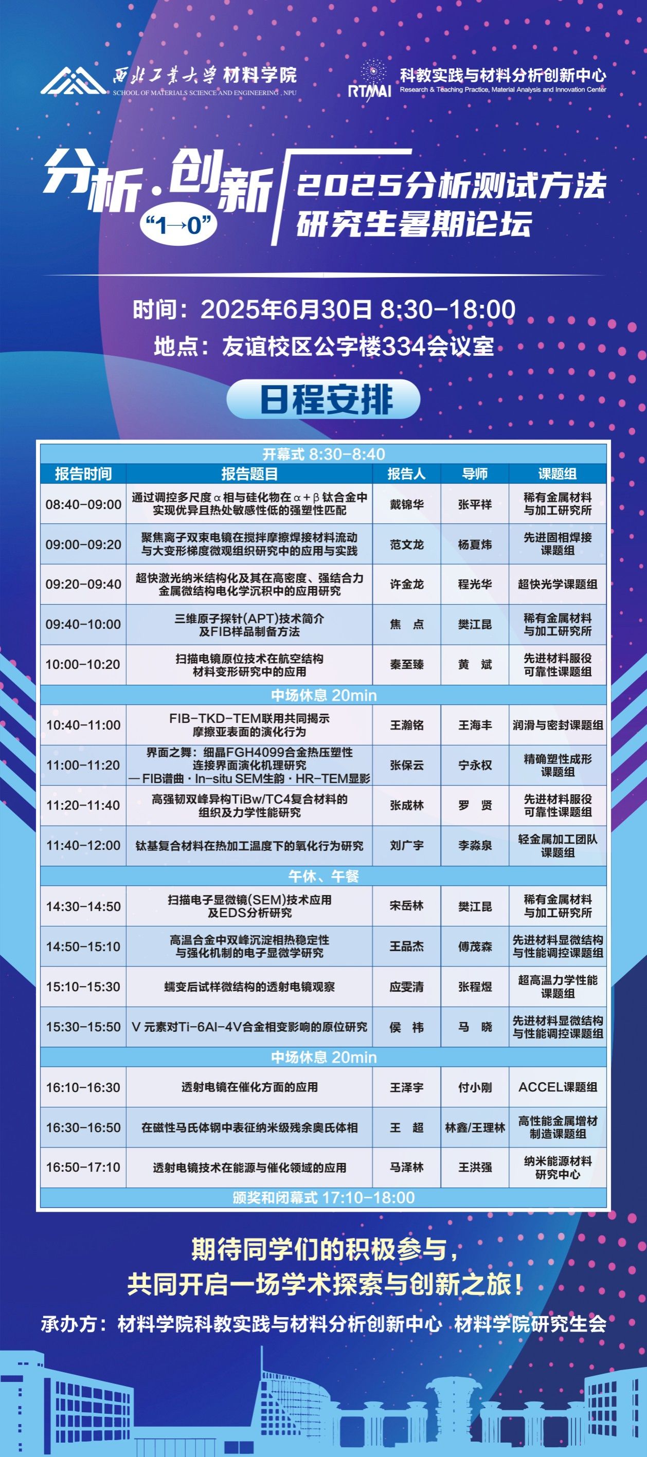 分析·创新“1→0”:2025分析测试方法研究生暑期论坛日程安排