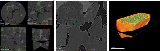 砂岩的三视图虚拟二维切片 砂岩孔隙(3.5um) 固态氧化物燃料电池多相三维成像