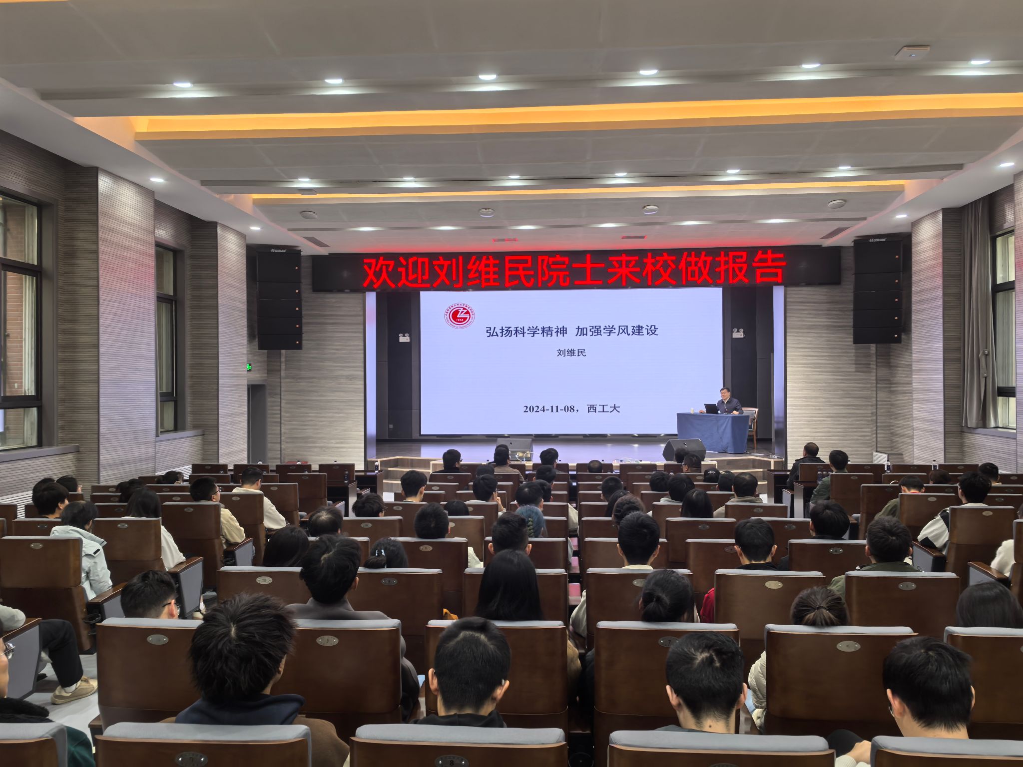 师生作报告表示感谢,要求全体师生认真学习刘维民院士报告内容,弘扬科学家精神,恪守科研诚信,永攀科技高峰,矢志求实创新,在今后的学习和工作中锚定“天下工大、世界三航”远景目标,实现“为党育英才、为国铸重剑”的职责使命。