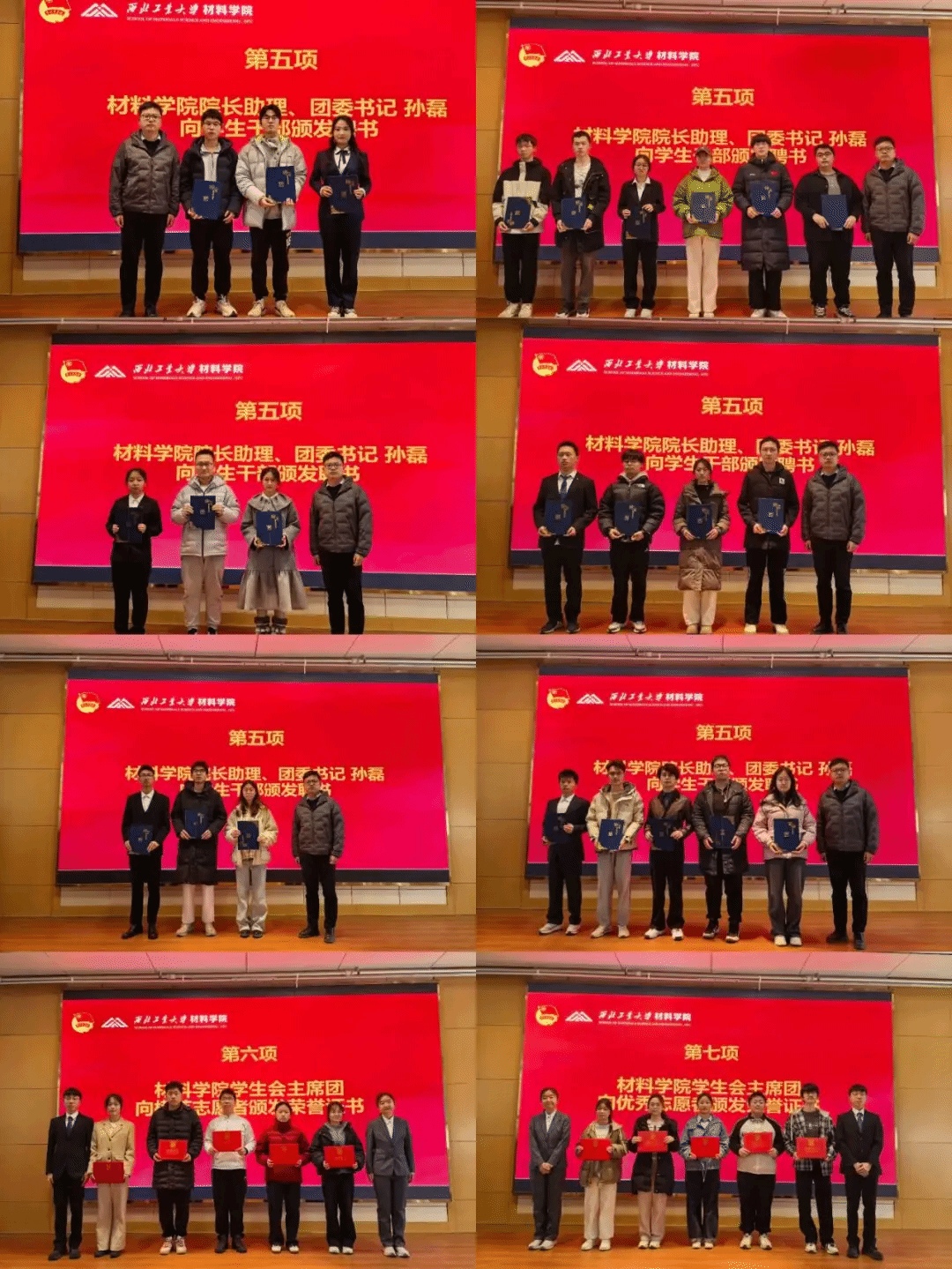 孙磊为新一届学生干部颁发聘书。学生会主席团依次为模范志愿者、优秀志愿者颁发荣誉证书,以此表彰他们在志愿服务活动中展现的责任担当与奉献精神,激励更多学子投身志愿行列。